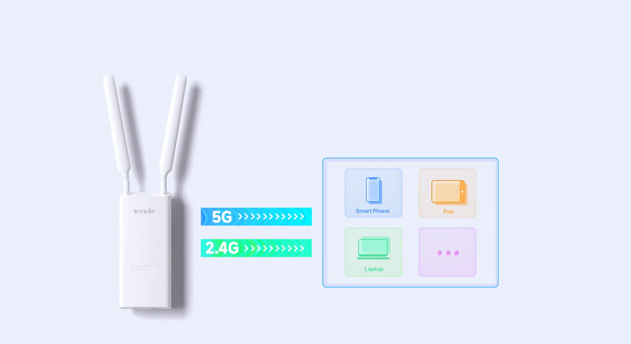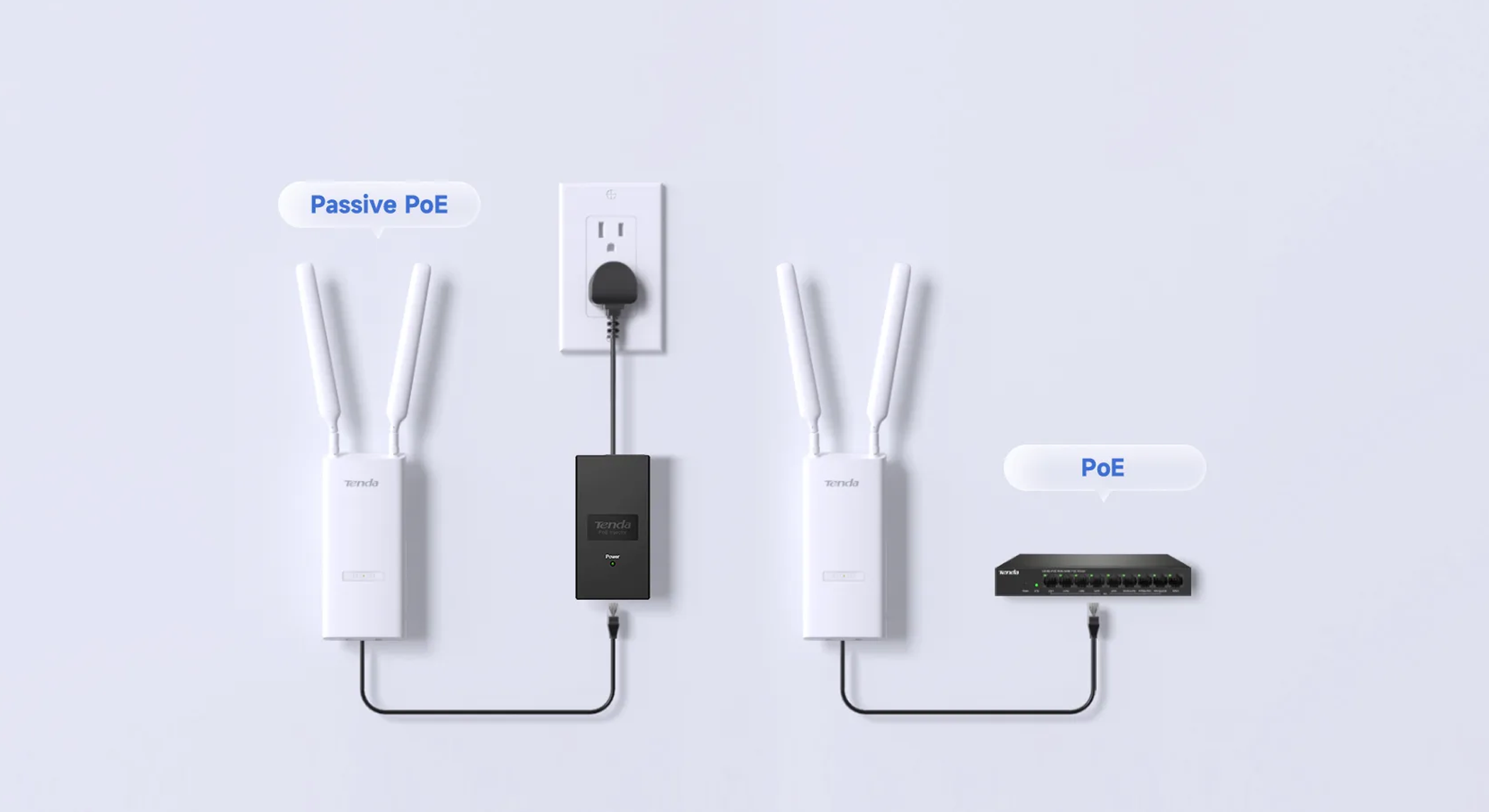Professional materials and design guarantee an IP65 enclosure for OAP1200 in harsh environments both indoors and outdoors, OAP1200 allows clients that support either 2.4 GHz or 5 GHz band, or both, to connect to it at the same time, tripling the quantity of connected clients compared with traditional single-band AP. Equipped with two 5 dBi high-gain omni-directional antennas, OAP1200 provides a maximum coverage radius of 200 meters. OAP1200 can meet different requirements by connecting antennas of different specifications to the standard RP-SMA connectors. OAP1200 adopts PoE 802.3af and passive PoE dual power supply design. You can power it on with the 24V 0.5A adapter included in the package or by a PoE switch.