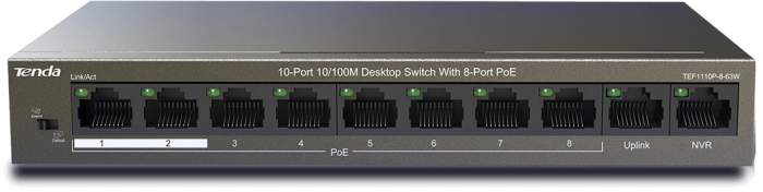 TEF1110P-8-63W 10-Port 10/100M Desktop Tenda Switch with 8-port Poe