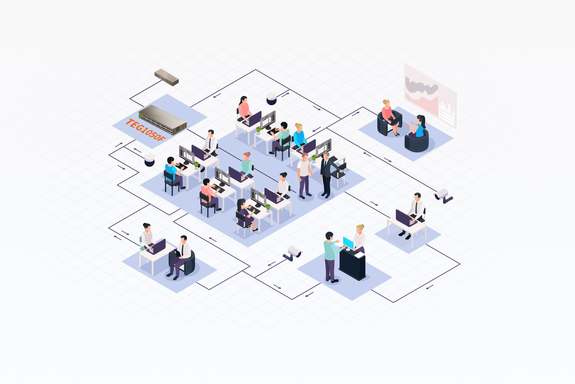 TEG1050F Feature wire-speed forwarding for efficient communication, It provides 48 10/100/1000M auto-negotiation RJ45 ports and 2 1000M independent SFP slots, its full-duplex transmission rate can reach 2000 Mbps. Compared with the traditional connection method of cascading two 24-port Gigabit switches, its high-density ports can easily solve the problems of large space occupation and high failure rate encountered in the project. With 12 Mb large buffer, the switch can meet the needs of such network applications with burst traffic as search engine, IPTV, and P2P downloads, ensuring no packet loss, timely transmission of large files, and smoothness of videos. It supports Desktop/Wall/Rack Mounting,